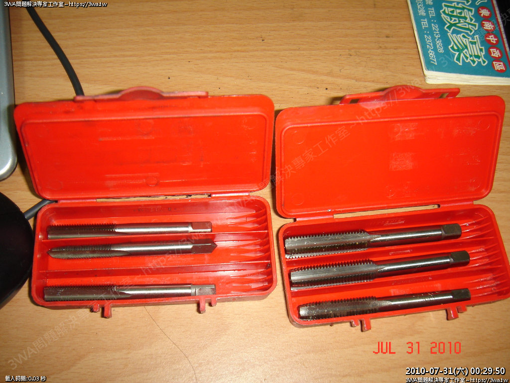| 內容說明:攻牙工具組 | 瀏覽人數: 3930 |