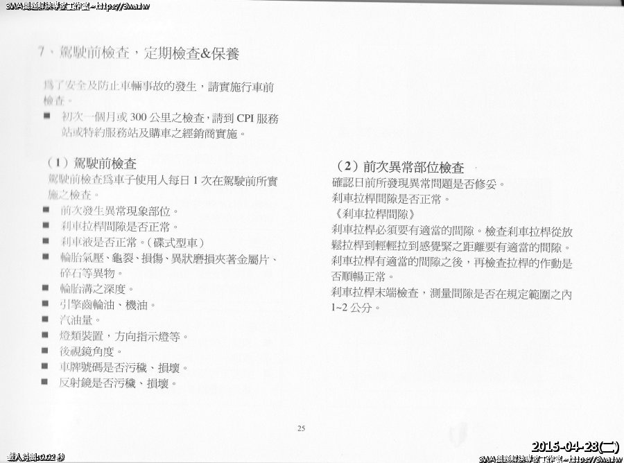 | 內容說明:SM250車主手冊 | 瀏覽人數: 1641 |