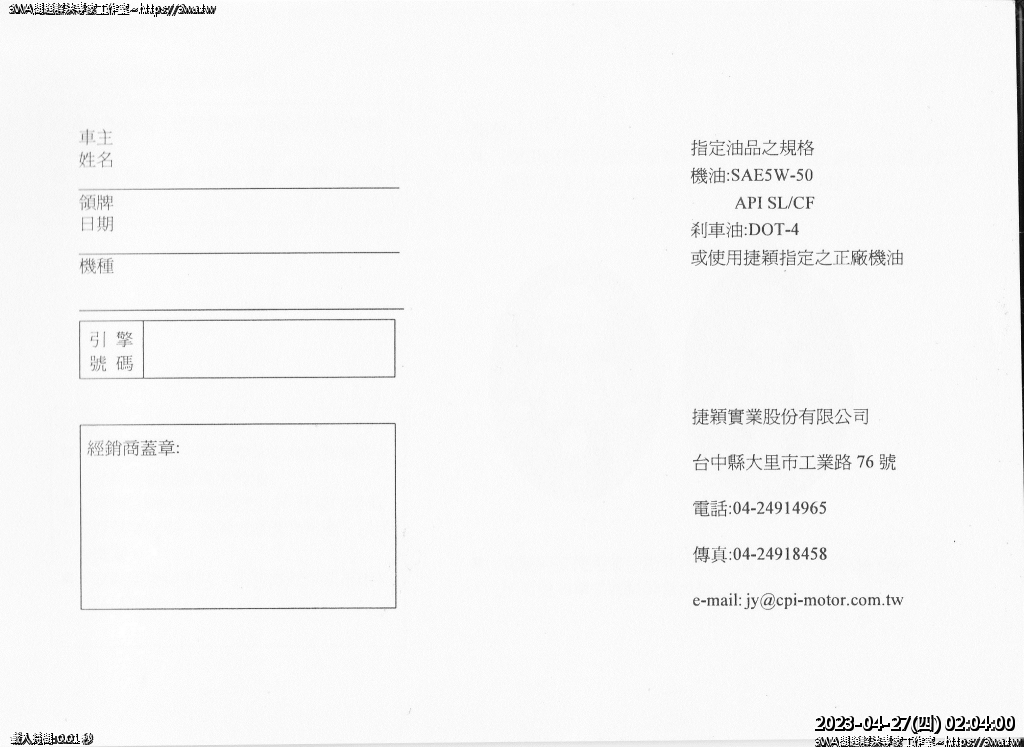 | 內容說明:SM250車主手冊 | 瀏覽人數: 1921 |