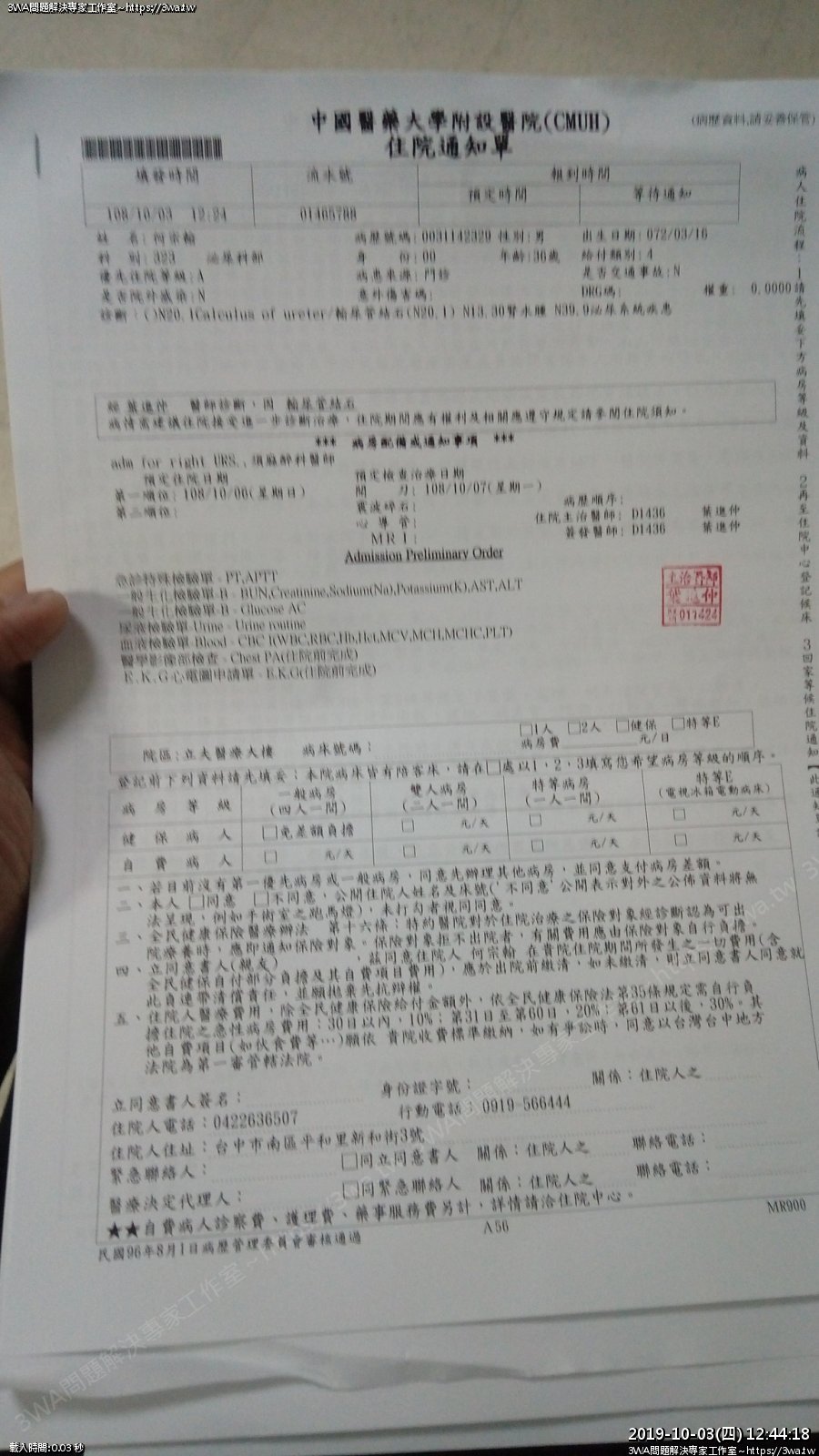 | 內容說明:2019.10.07腎結石開刀 | 瀏覽人數: 1270 |