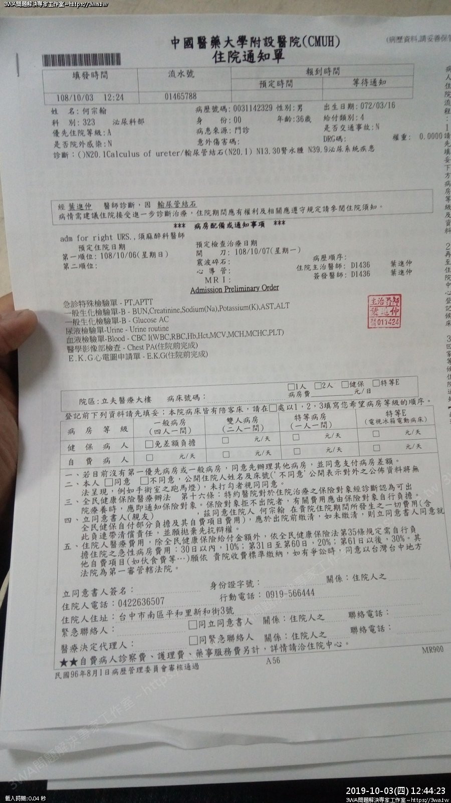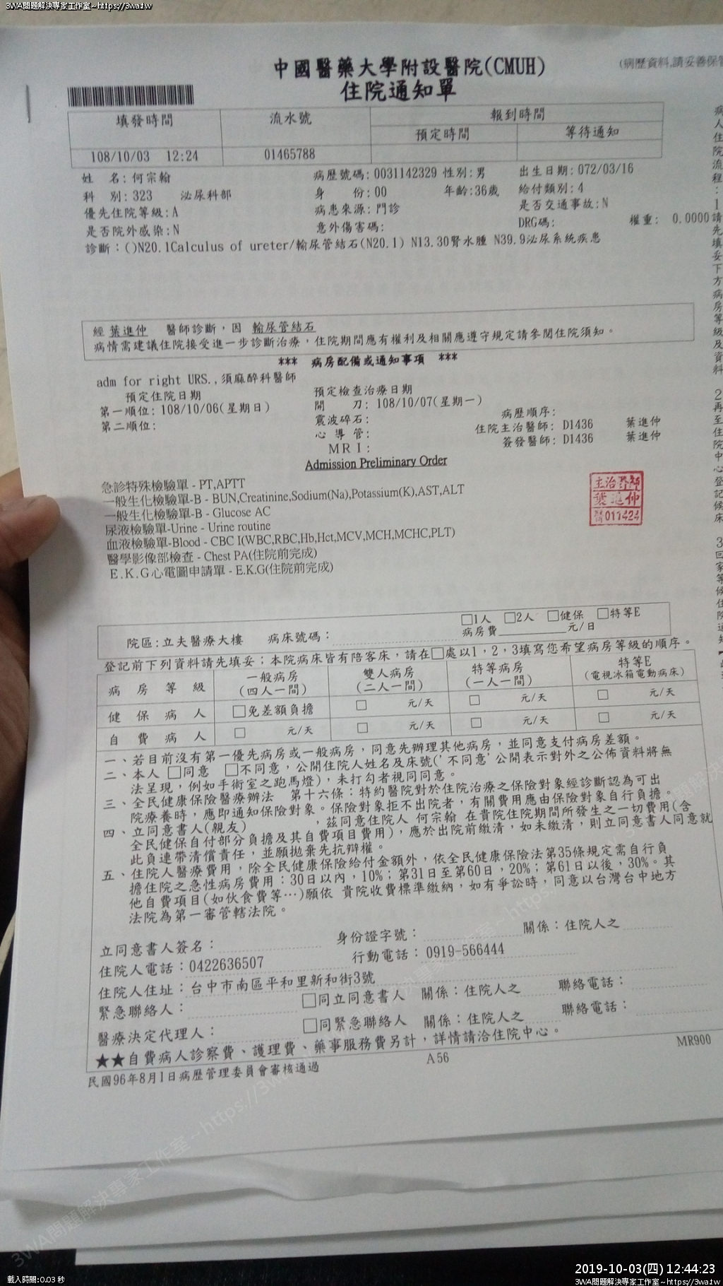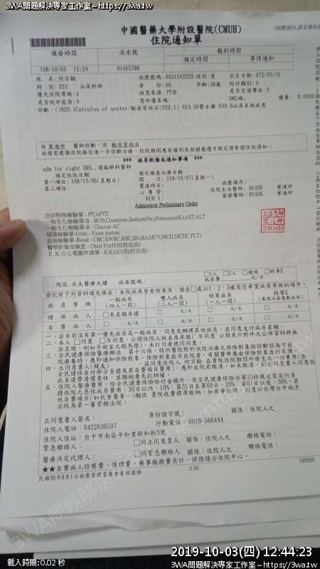 | 內容說明:2019.10.07腎結石開刀 | 瀏覽人數: 1285 |