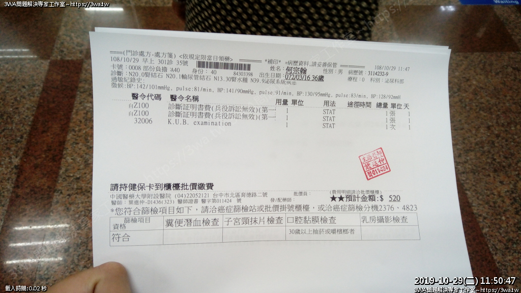 | 內容說明:2019.10.07腎結石開刀 | 瀏覽人數: 1433 |