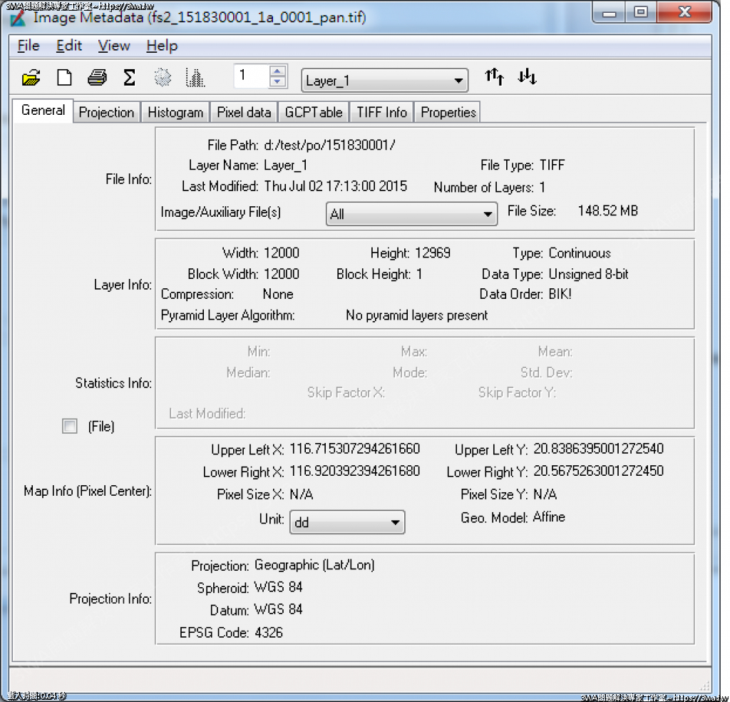 | 內容說明:GeoTiff Header | 瀏覽人數: 1632 |