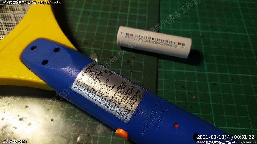 | 內容說明:2021.03.13電蚊拍更換鋰電池 | 瀏覽人數: 1228 |