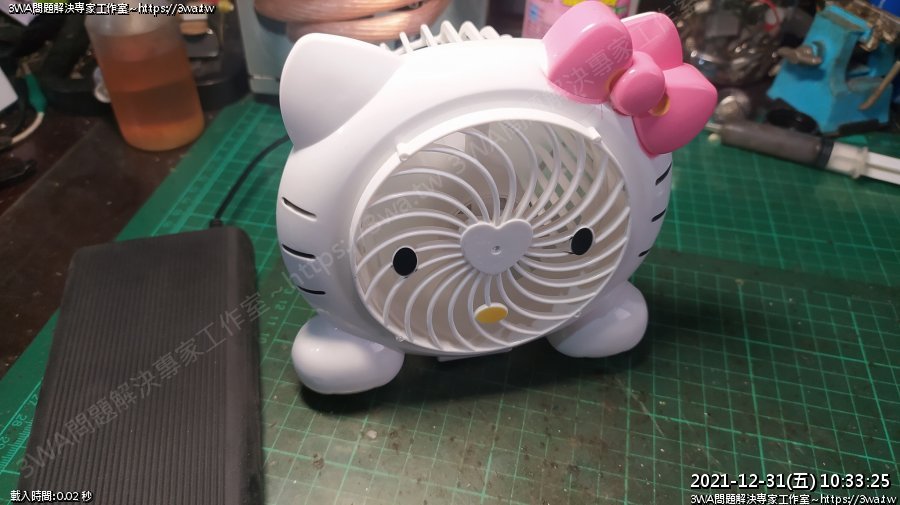 | 內容說明:2021.12.31維修HelloKitty電扇 | 瀏覽人數: 1051 |
