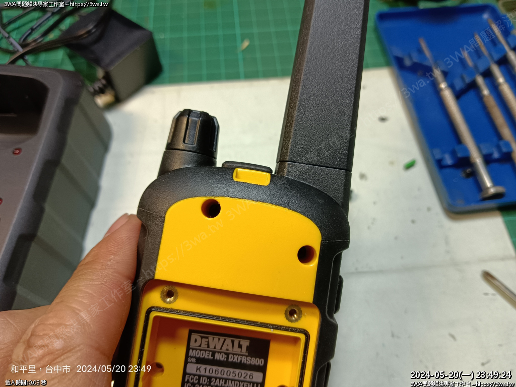 | 內容說明:2024.05.21維修Dewalt walkie talkie | 瀏覽人數: 764 |