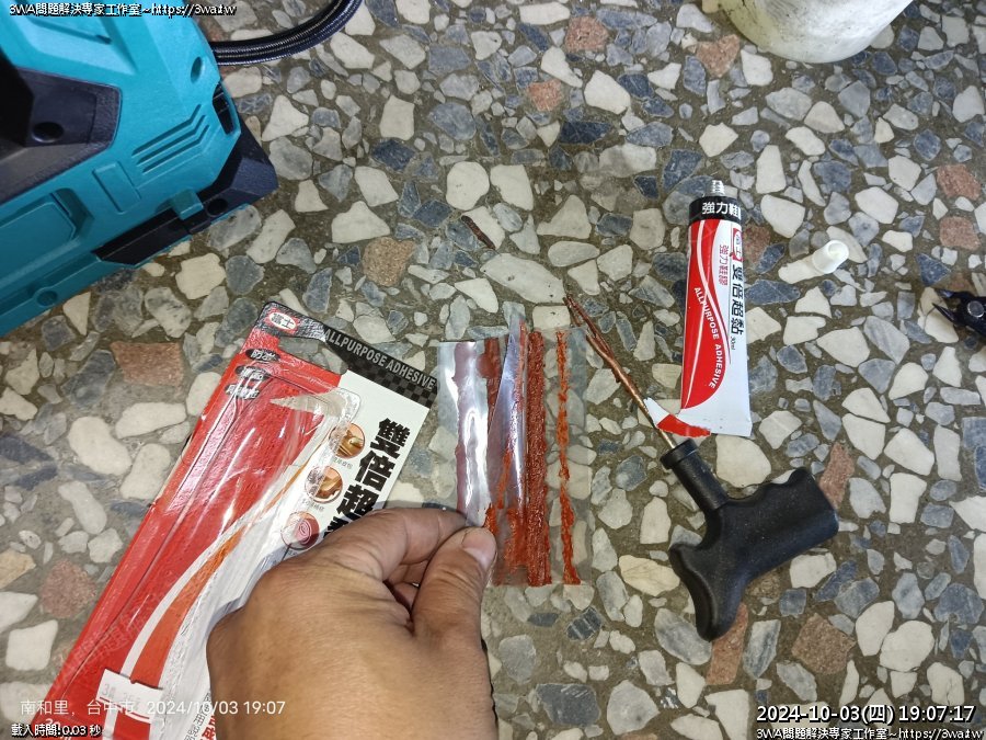 | 內容說明:2024.10.03NSR中釘補胎 | 瀏覽人數: 602 |