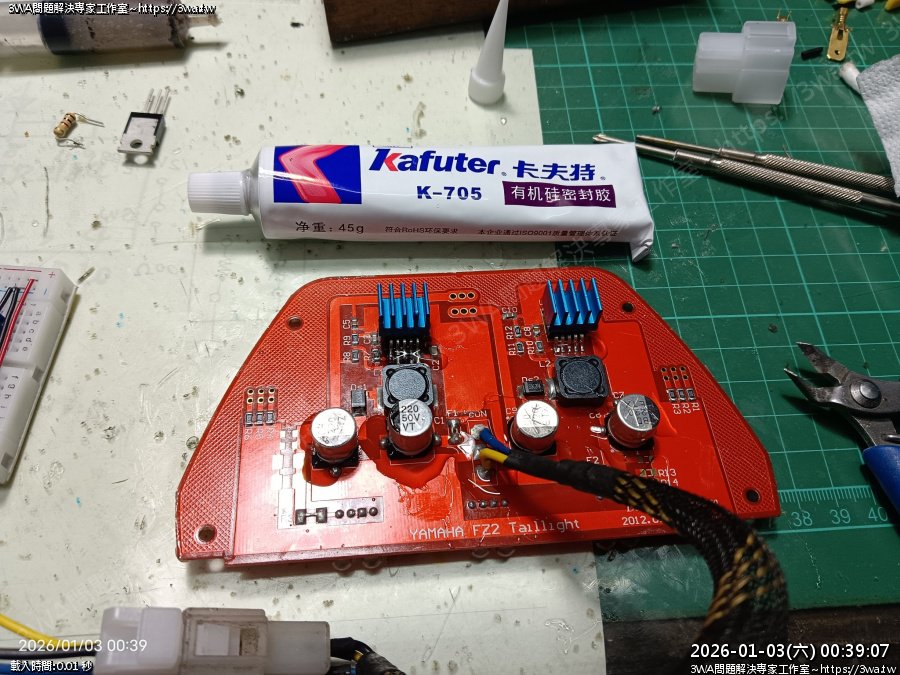 | 內容說明:2025.12.25FZ2 狐大LED尾燈維修 | 瀏覽人數: 30 |